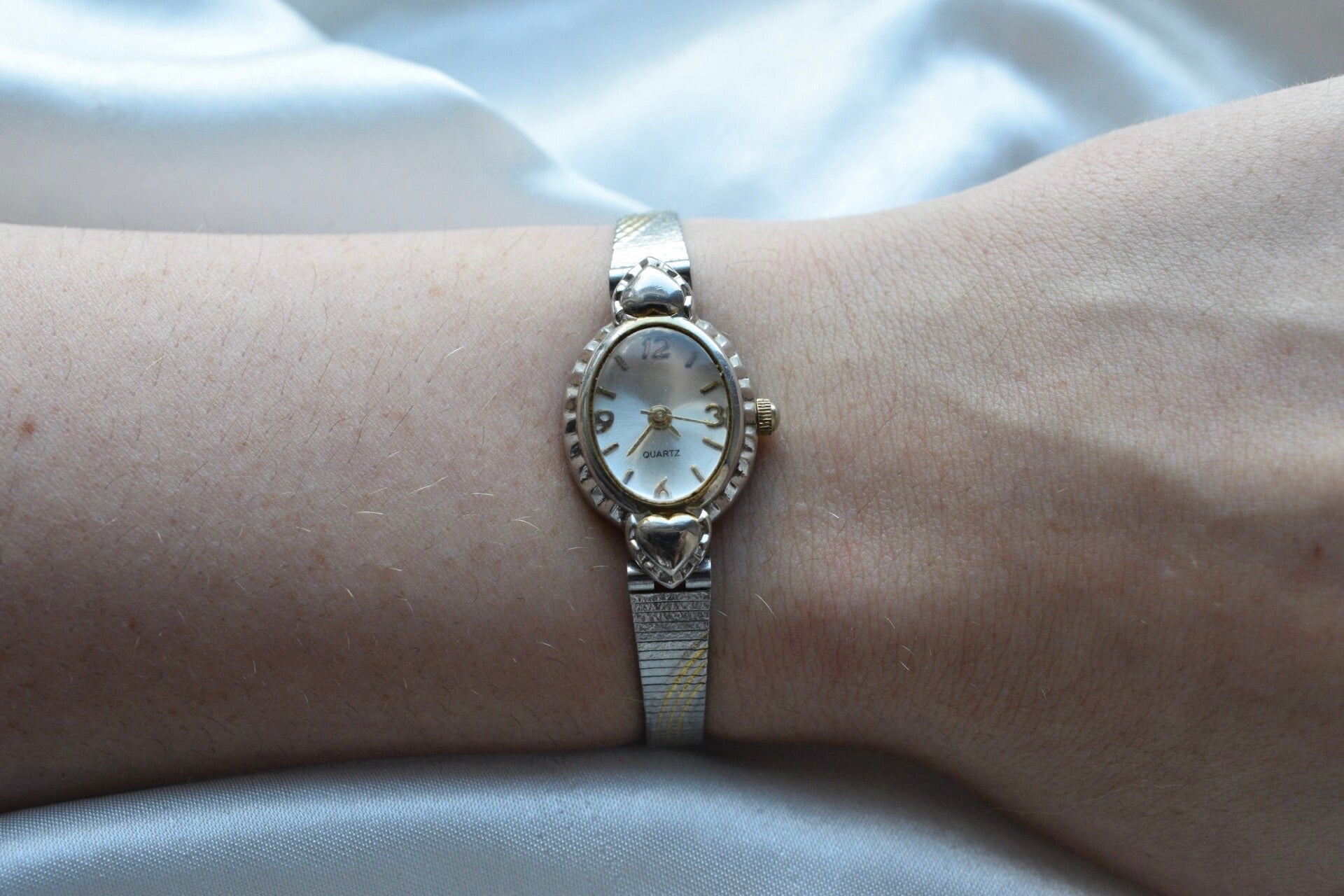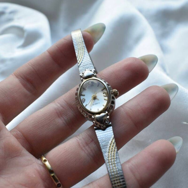 TICKING/WORKING - quartz - new battery - heart details on the face