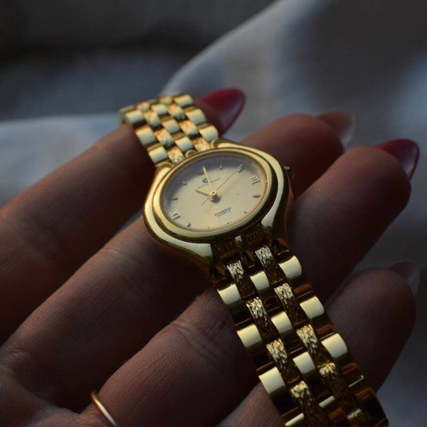 Women’s JB Champion gold toned clasp band style watch.
