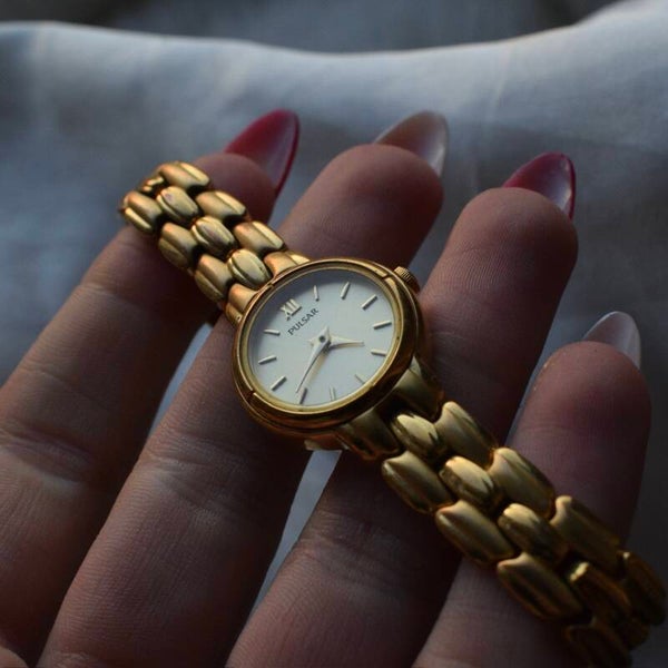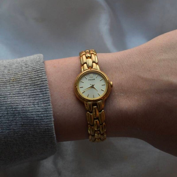Women’s Pulsar gold toned clasp band style watch.